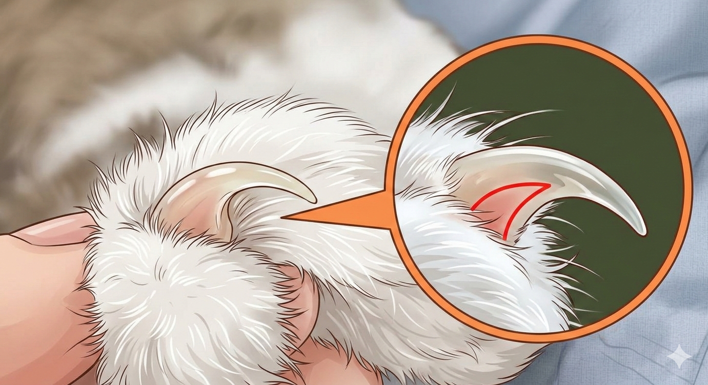 爪の内部には「クイック」と呼ばれる神経と血管が通っていて、この部分に刃が到達すると鋭い痛みが生じる。人間でいえば深爪をしたときの痛みに近い。